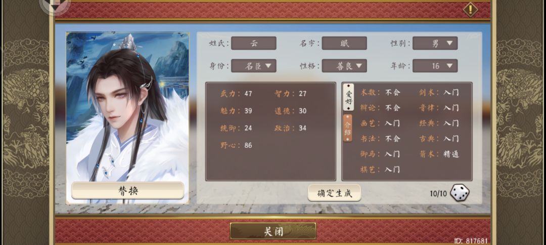 立绘和简介生成后是可以修改的,不过简介有次数限制。可以佩戴技能真的太可了,快多出点墨宝呀,比如每回合-5暴虐啦,每回合-2野心啦,每回合+15体力什么的嘿嘿…当然更强力点更好,那样可以省下不少天命点带其他天命了