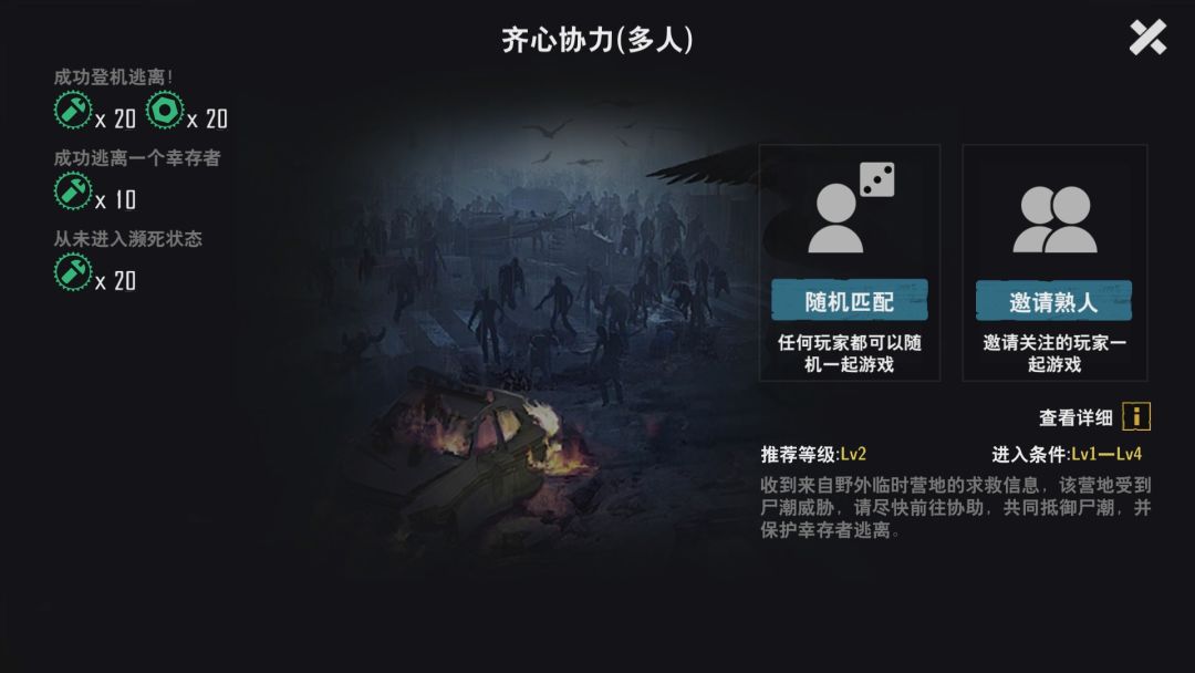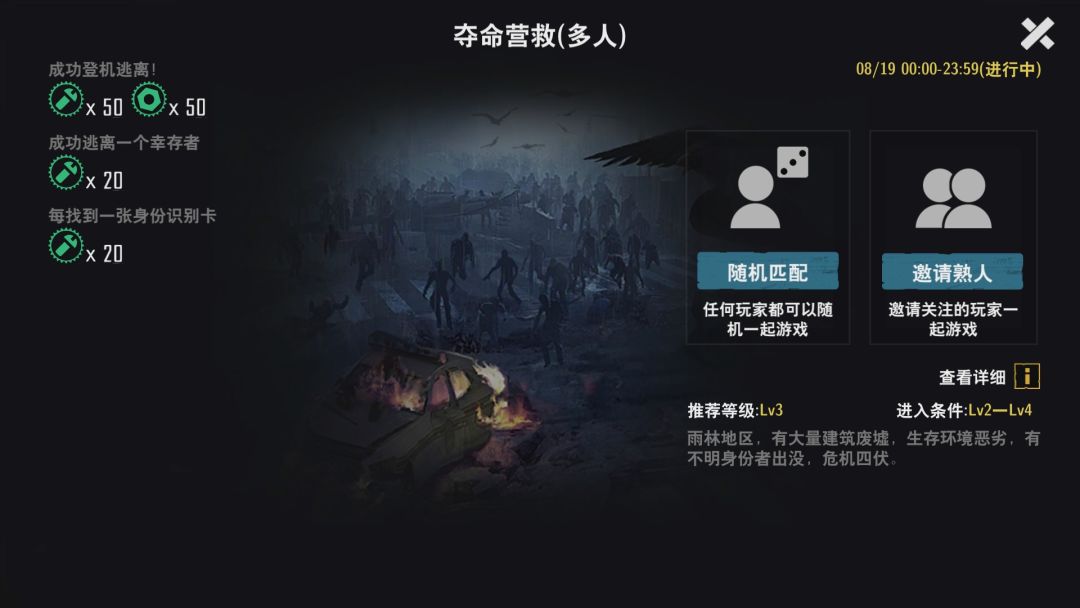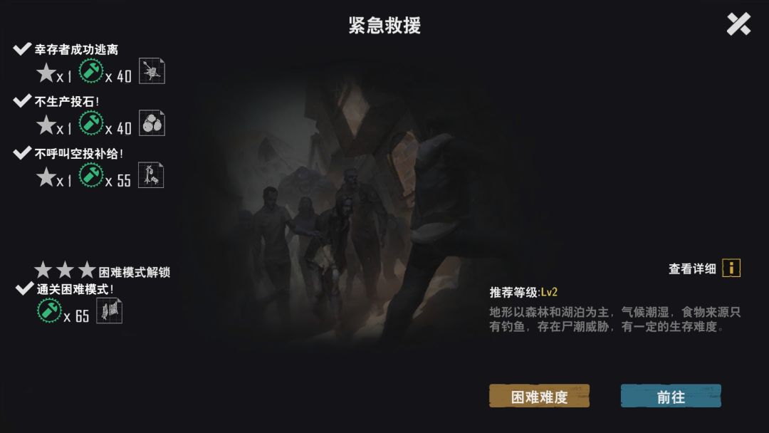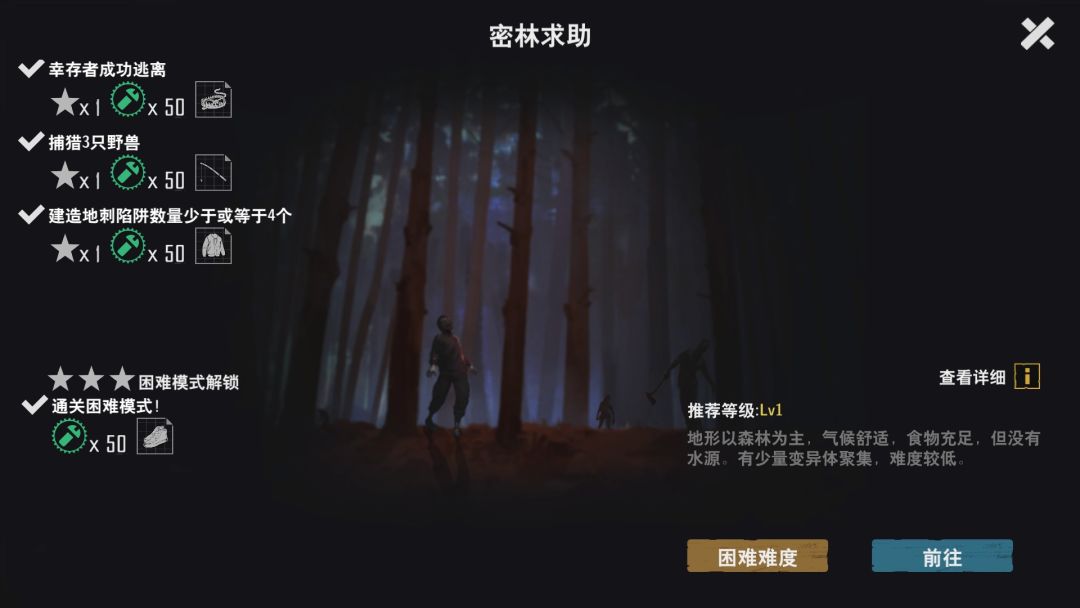 注意事项:郊外森林场景的幸存者必须救。困难模式别的图,可以不救幸存者直接登机,这个图不可以,幸存者不上飞机就算失败。 产出资源:麻叶,可以制造汤药和医疗包