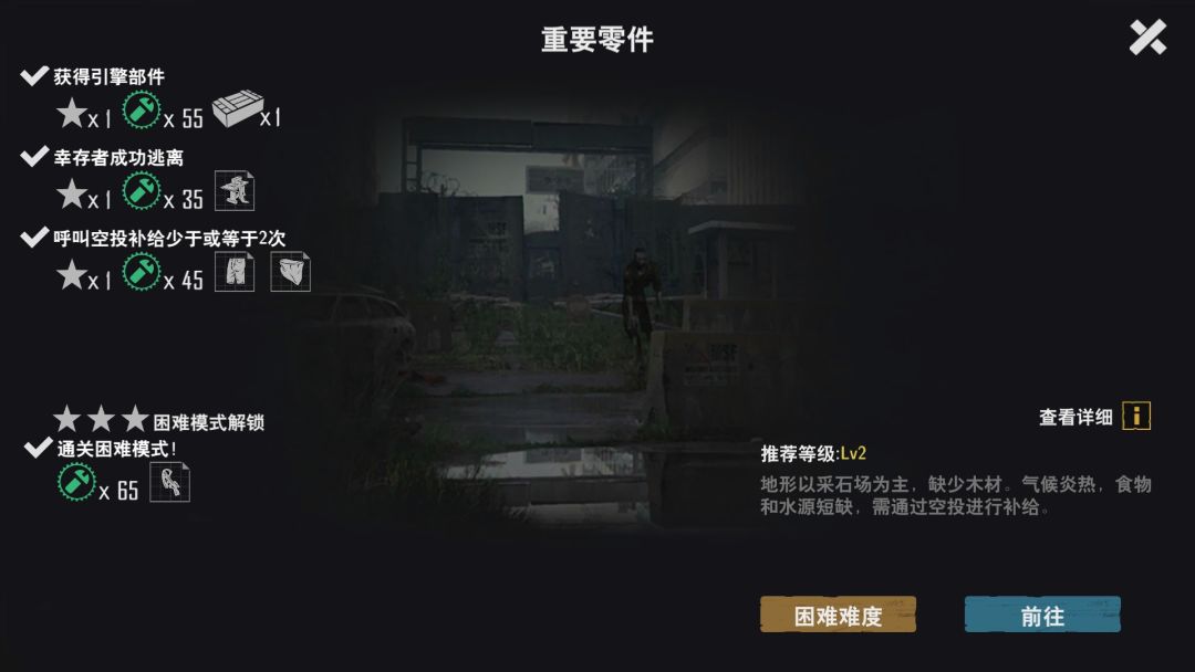 注意事项:幸存者在废弃矿场,需要修复地图中的半成品瞭望塔才能过去。