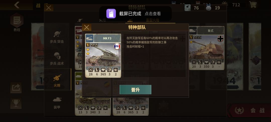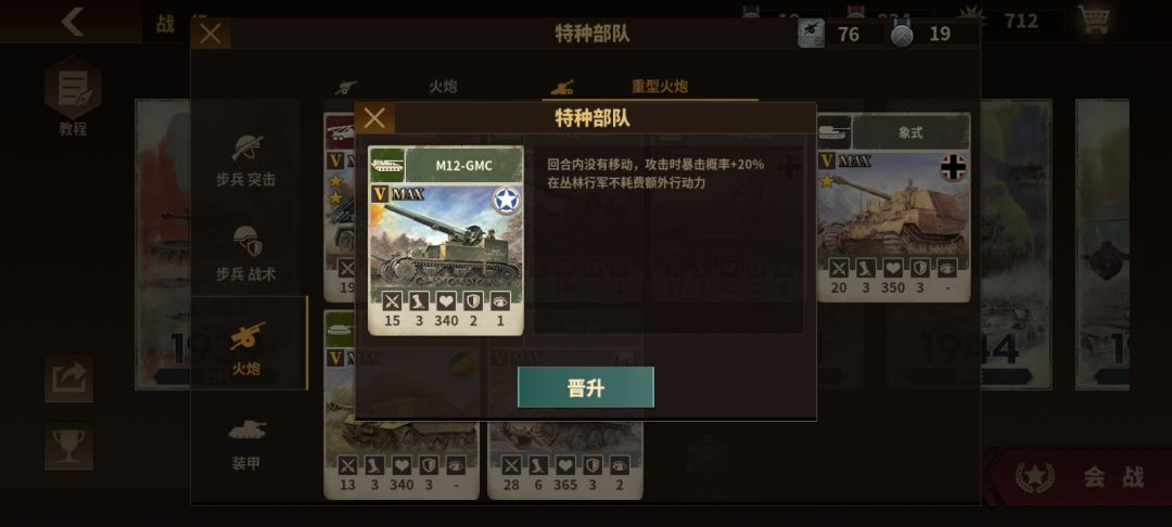 特殊能力:对坦增伤42%,歼灭敌军后有35%的几率再次攻击