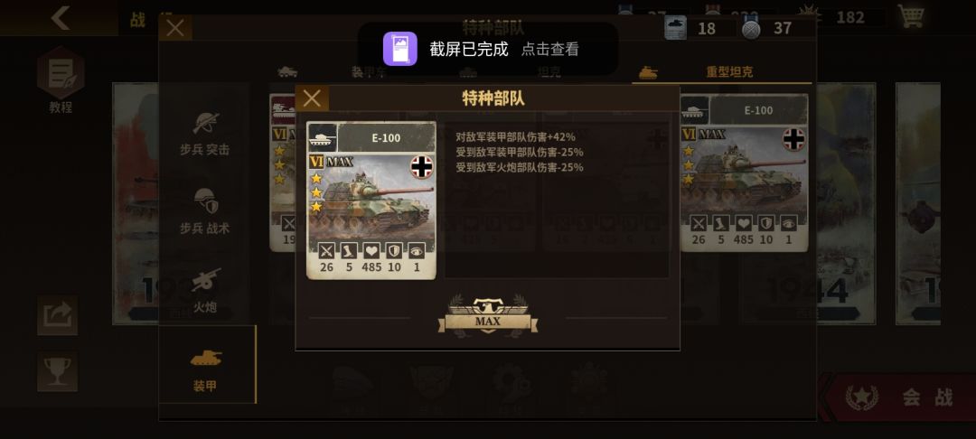 特殊能力:对坦克增伤42%,对坦克减伤25%,对火炮减伤25%