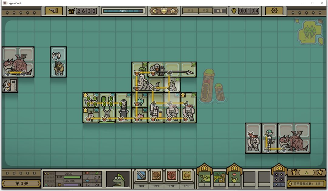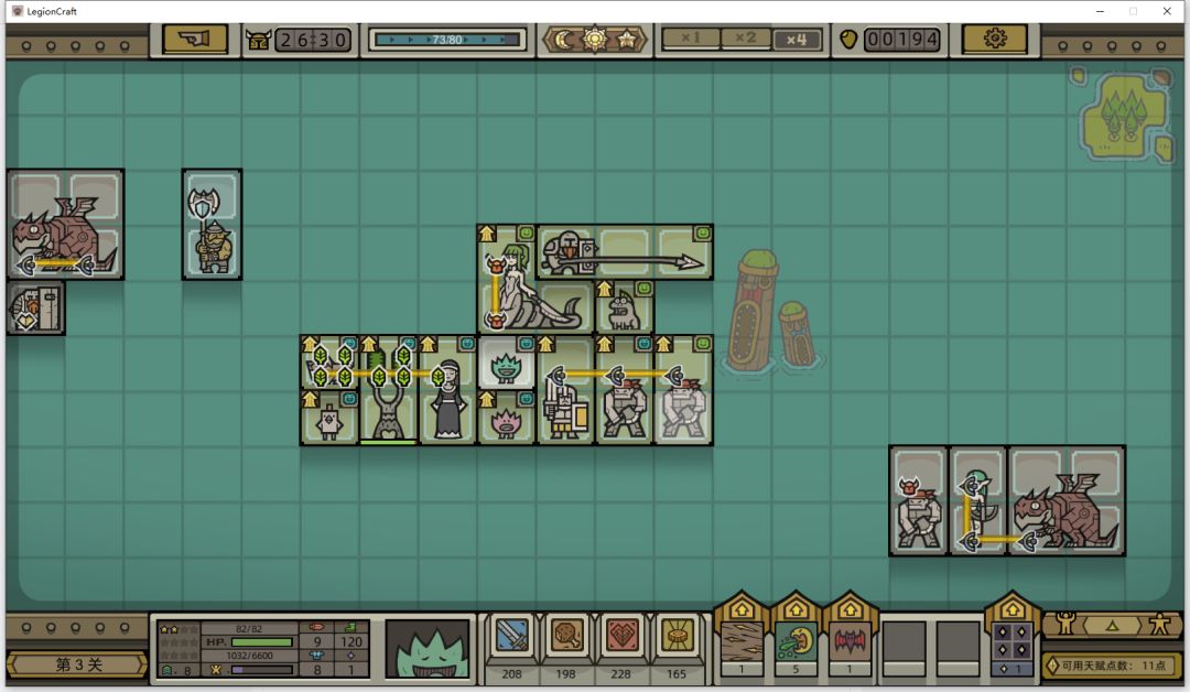 解释一下我为什么这么连:首先蛇人武士需要一个远程符文,所以尾巴和英雄头接触,方便英雄给远程,其次,蛇人武士可以把攻击符文给毒叶怪,毒叶怪再向下把符文传递给全军团,所以这是连接的唯一点位,希望大家能学到这样的很简单的分析能力。