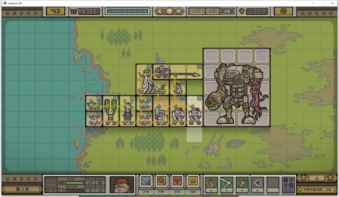 没有输出单位,我们尽量少打敌人,从上边溜过去,这也是为什么我喜欢保持2-3格的高度,便于找有用的单位