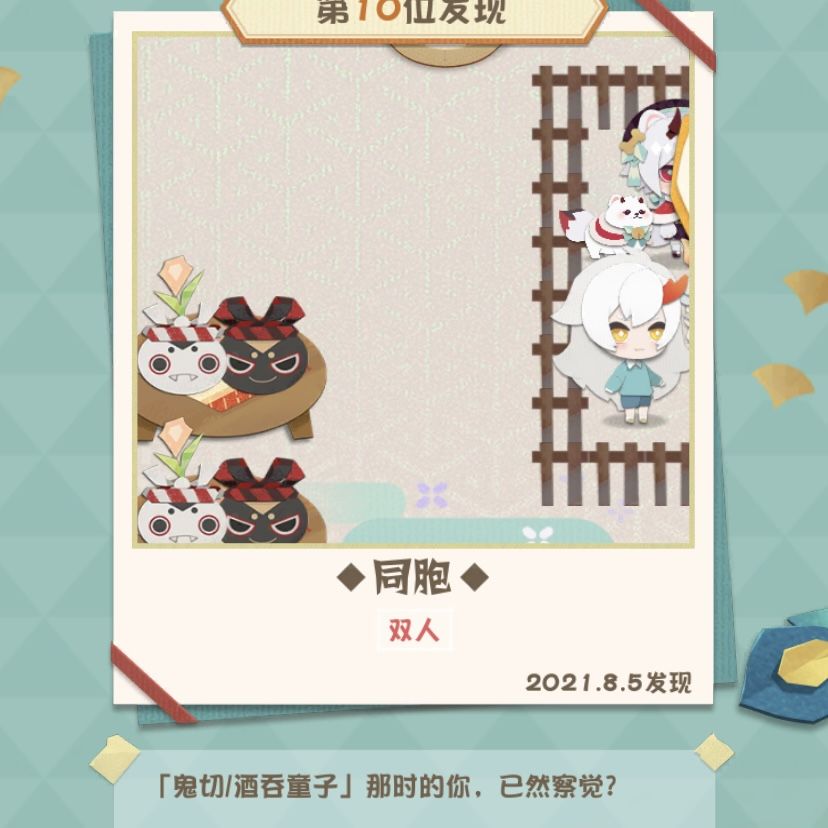 彩蛋3:「同胞」鬼切/酒吞童子/双人,不需要点击式神,也不需要进行任何操作,等待自动触发即可(策划的良心)