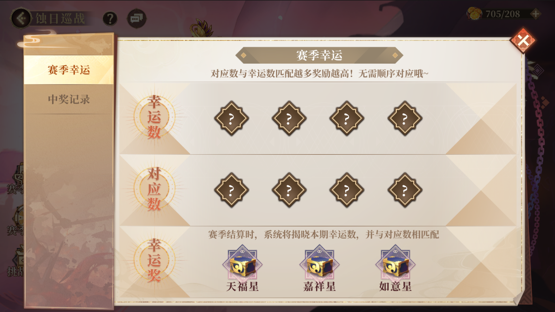 赛季结算时系统将公示赛季幸运数字,并与玩家挑战最高伤害值的后4位数进行匹配,有2/3/4位数匹配时分别获得对应档次的奖励,并通过邮件进行发送。