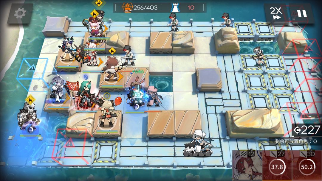不知道别人怎么打的,我自己摸索的这个方法,然后过了四个号。稳定403。红蒂凯爹什么的试过几次终究还是舍弃了,牌子带的两个50侵蚀回复,术师组200攻,近卫组200防,还有一个近卫组水蚀状态+40%防。不想再想别的思路了。终于全打完了