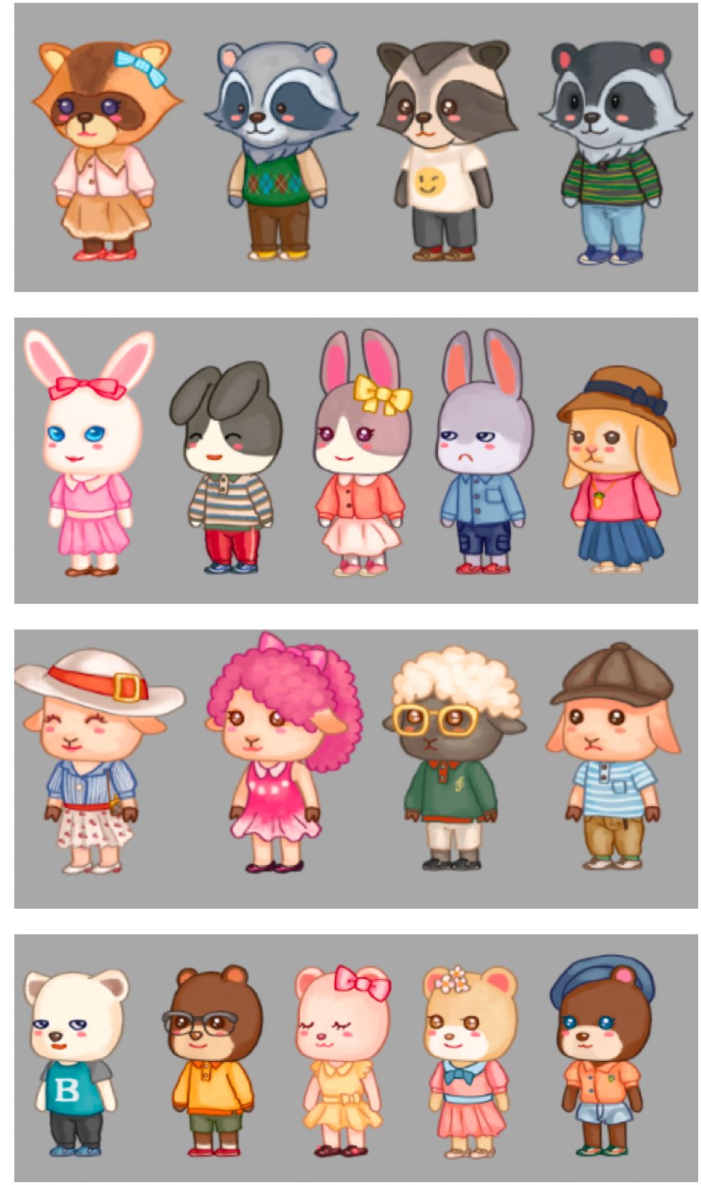 第一个版本的小动物可不止这么多哦,除了特殊角色以外,动物将会以种族的形式出现。每个小动物都会有自己的性格和属性技能,各位店长合理查看小动物的属性,可以更好的安排他们工作。