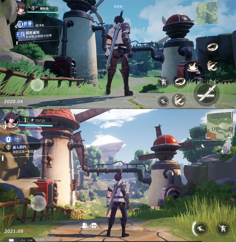 最近翻出一张去年的研发中画面,同一个地方,20年4月到21年8月,我们迭代了很多东西,画面效果也有了极大的提升,继续前行。