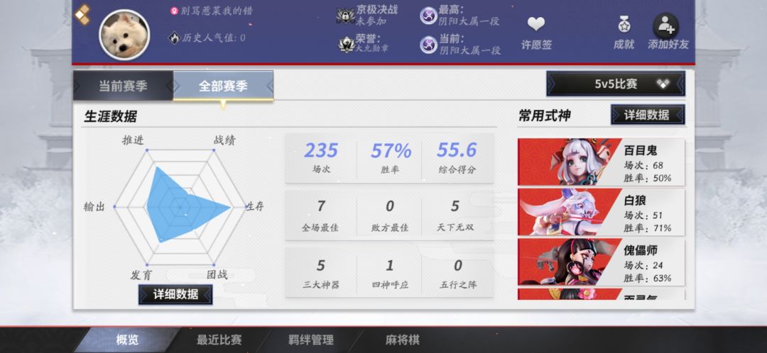 不多废话了,见识一下全部赛季235场的傻嘚吧