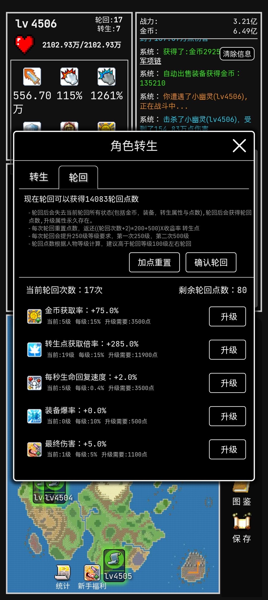 再加个100级,轮回点回报率也不错。
