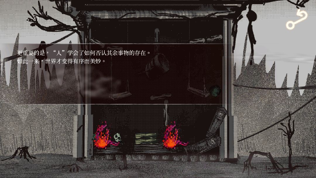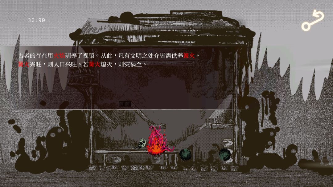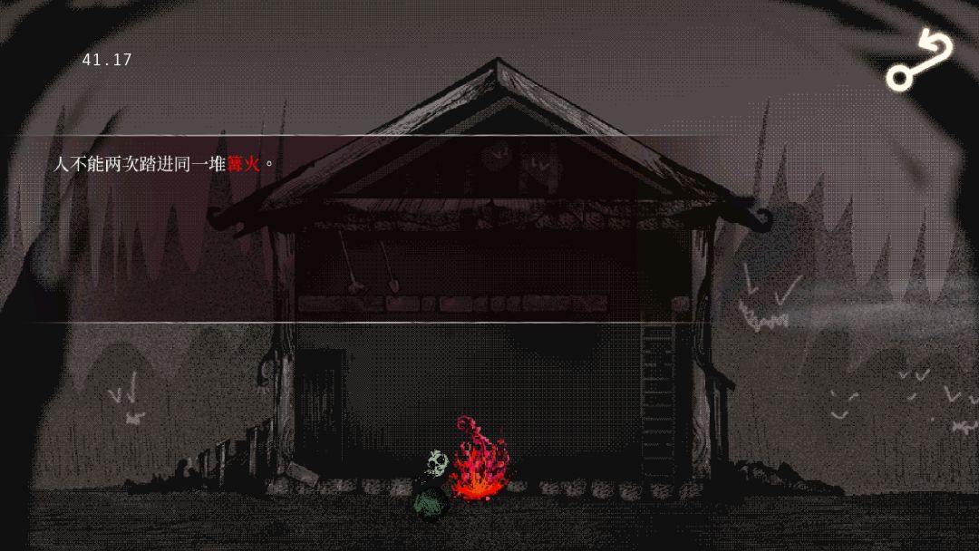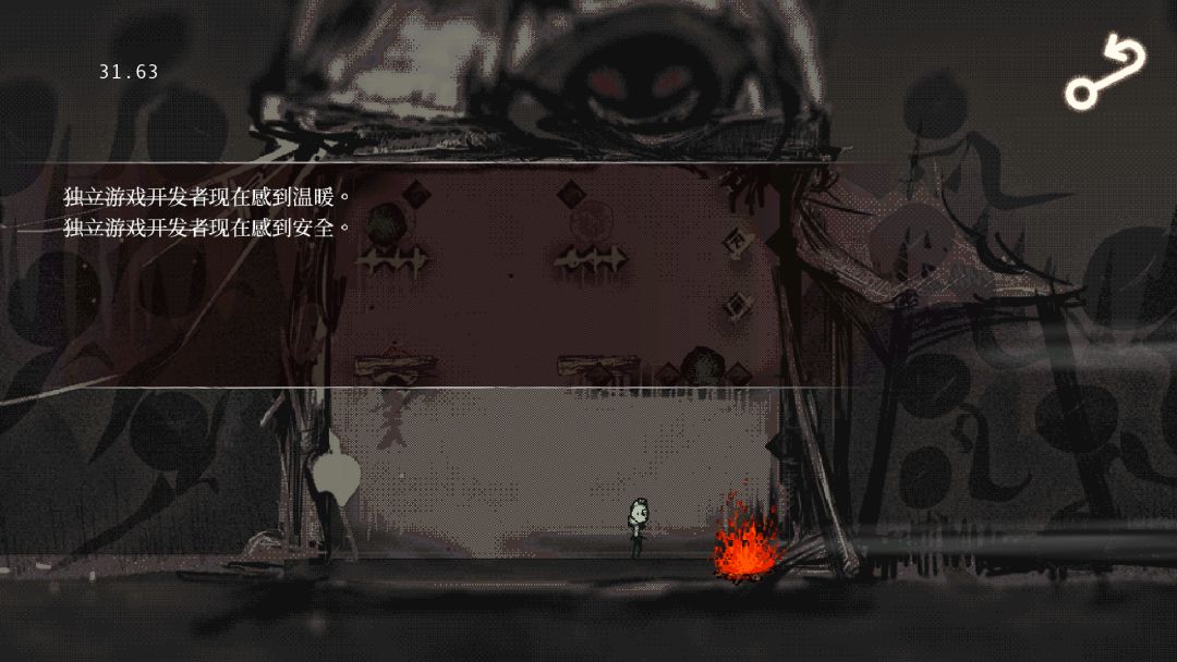 最后一关他不可能活下来,柴薪一动他就会左右反复,石头推不下来,所以必死,bug是把可移动的那根柴薪往左移动,慢慢的移,人会被卡出房间,再烧掉柴薪会显示感到温暖和安全但是没有下一步 。