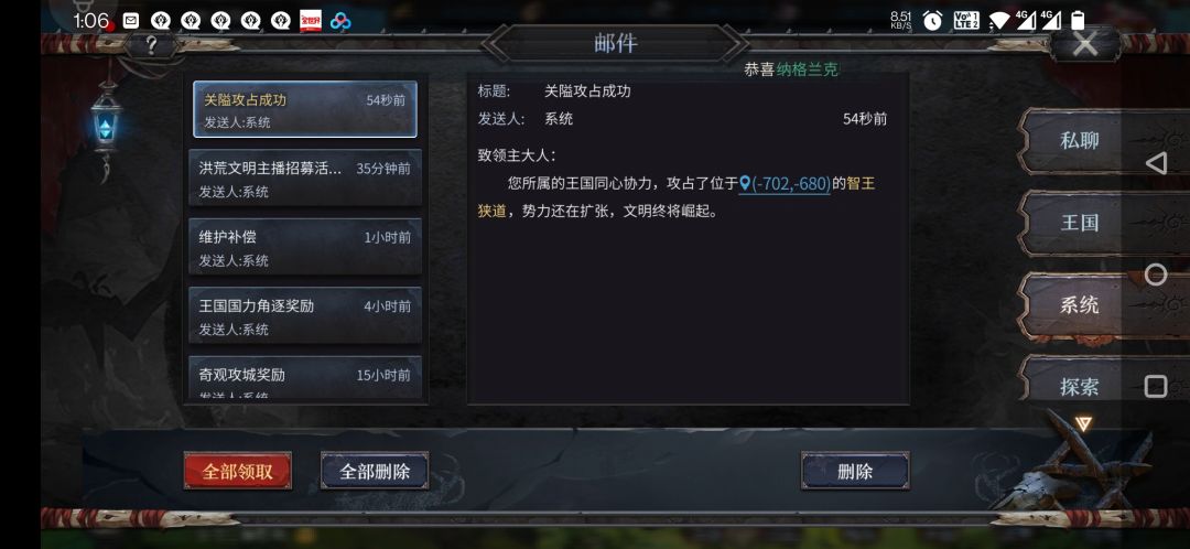 为了发展之前已被损耗的国力,全王国成员挺进资源州,打地发育,休养生息,但王国在休养的同时也不能放松对训练的松懈,根据战略决策中心的决定,由主力一团指挥司马老贼调动本团前往亚特兰蒂斯卡尔克萨4级遗迹进行攻城野战拉练,由主力二团指挥伪神调动本团前往不死域坦塔2级遗迹进行攻城野战拉练,并在8月18日晚上成功分批拿下.
