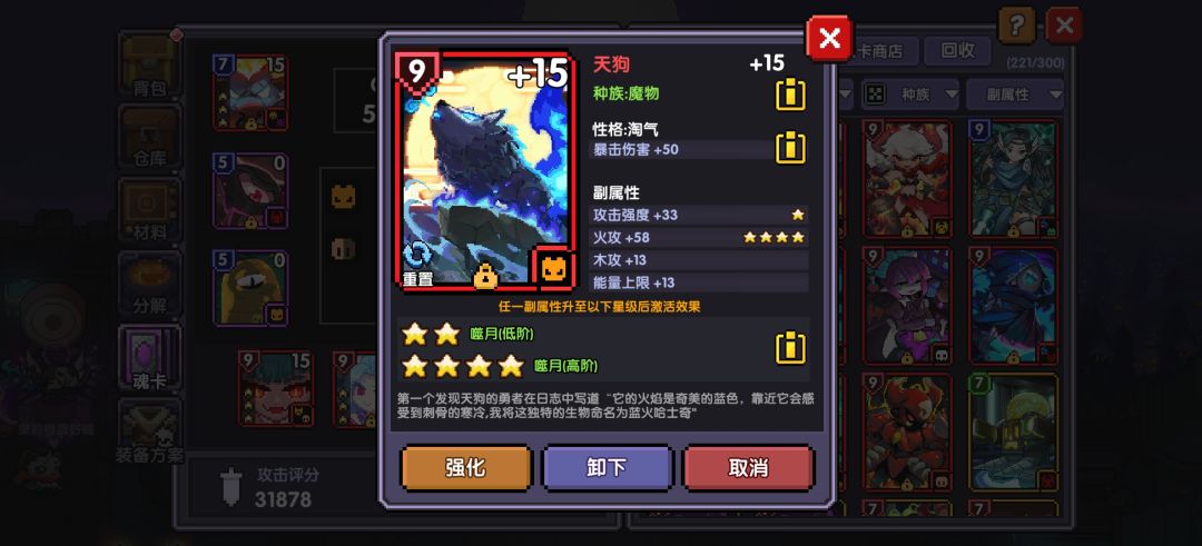 然后前几天天狗4星了一分钟秒伤2.1现在