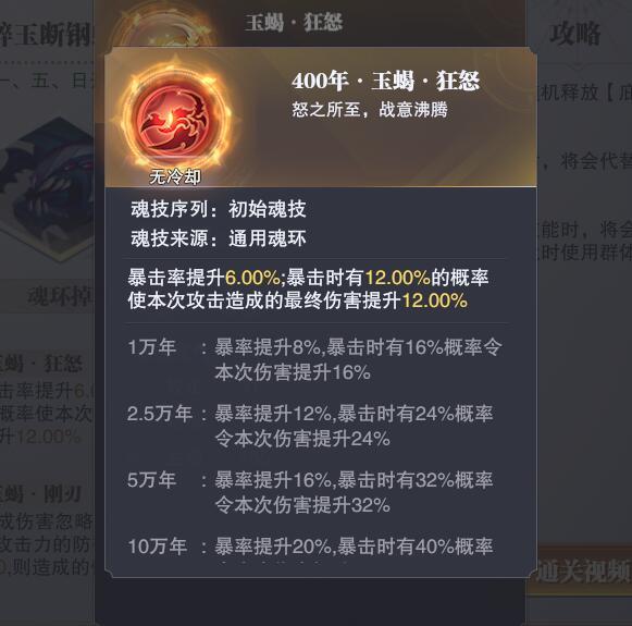 狂怒比较简单粗暴,直接提升暴击率,并且暴击时概率提升本次伤害,这个比较通用,基本所有输出都可以使用,特定的比如唐昊羁绊满暴以后转换为爆伤,锤三配合猛兽被动达到百爆之类的,对于现在通用魂环位置较少时候,可以使用但是如果其他通用系有更好的选择,优先选择不会太大,推荐唐昊、锤三使用。