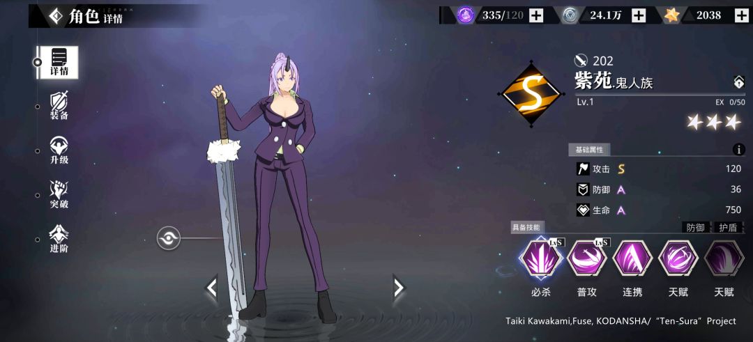 “紫苑”在动画中的戏份较为出彩,在正版手游《转生史莱姆》中同样也给不少粉丝喜欢的角色之一!在游戏中,玩家们可以携带“紫苑”上阵战斗,还可以通过「冒险模式」重温她的动画故事。