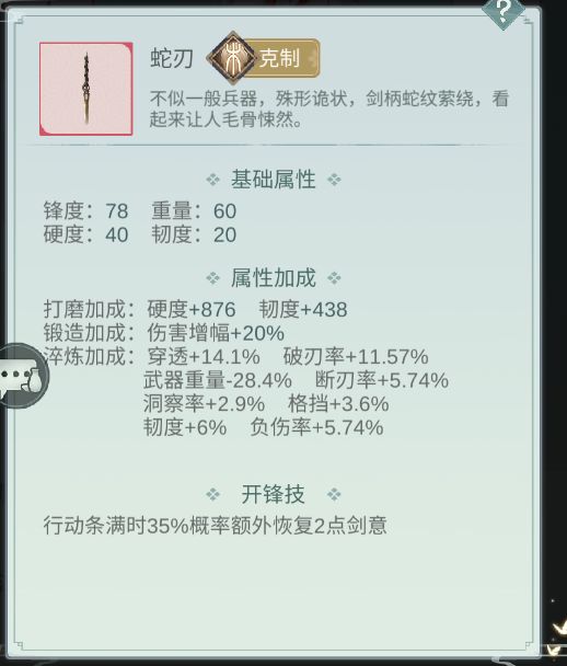 蛇刃:暗影能够灵活的运用开封触发的两点剑意,并且,洗的词条比较适合暗影。