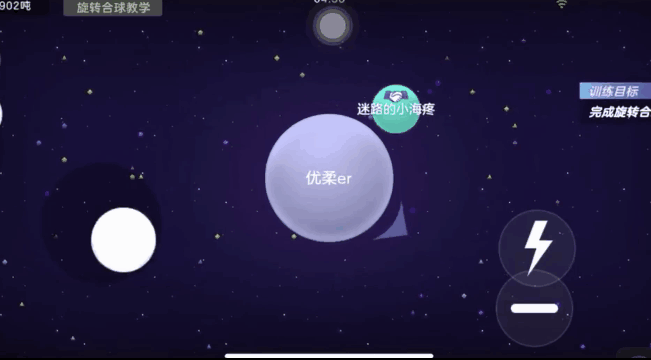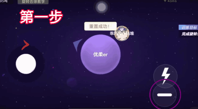 前期练习的时候我们可以在训练营里面,把一二三步分步操作,先拉第一步,再拉第两步,调整好位置再按分身,然后等熟练之后就不用加吐球了,初次练习的时候,加吐球是为了帮助找到合球那个点。