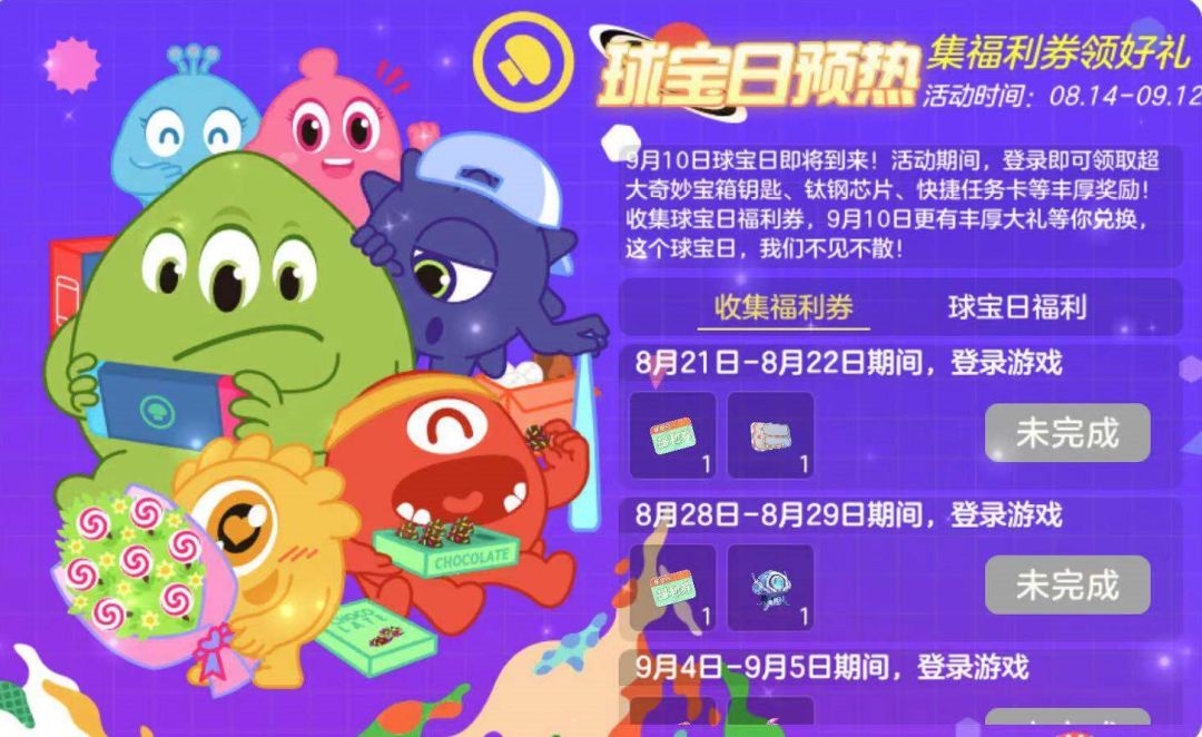 球宝日预热活动还在继续!这个周末也不要忘记来波拉哩领取球宝日福利券、超大奇妙宝箱钥匙、钛钢芯片、快捷任务卡等丰厚奖励!收集球宝日福利券,到了9月10日球宝日能够兑换惊喜福利哦!