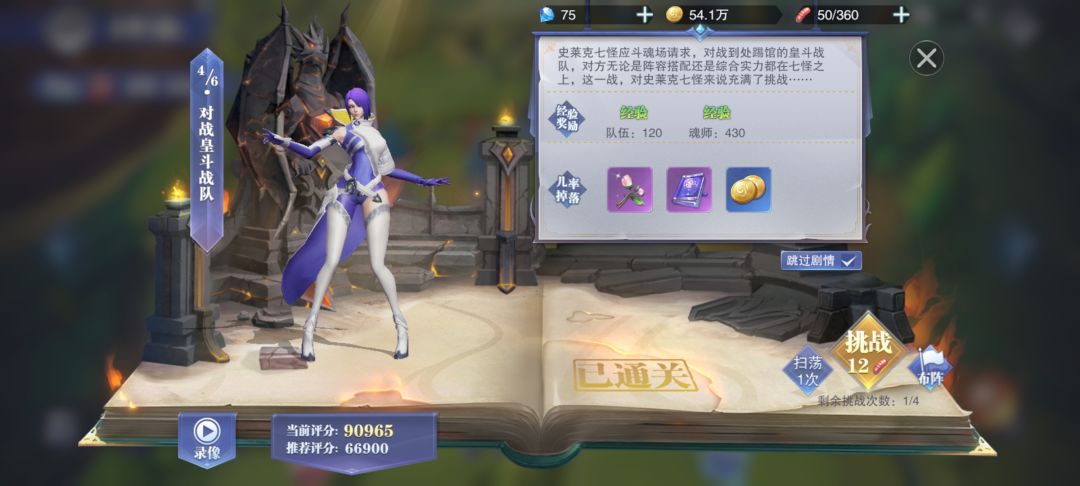 这是当时通关的阵容,可以看到战力不到五万,而推荐评分是6w6。这场越战中奥斯卡只是一个回魂工具人,开局拿到先机,就有很大优势了。