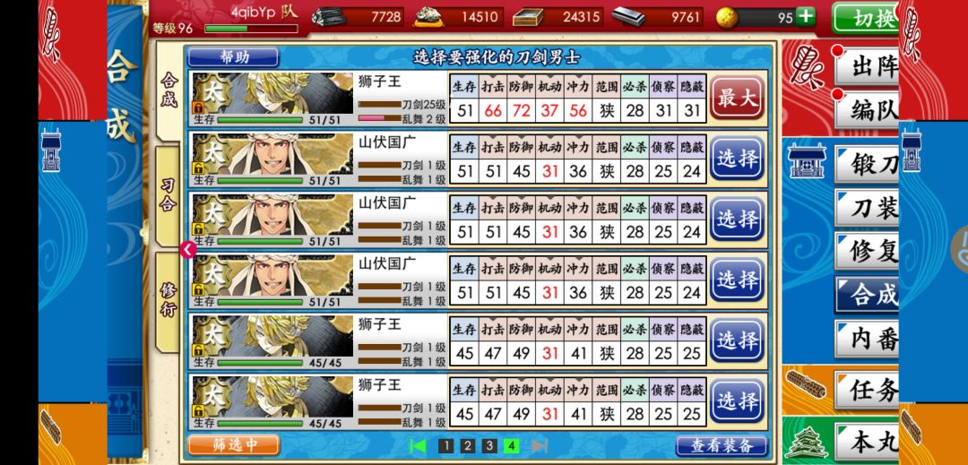 三刀装太刀排名(按打,防,机,冲的总数值)