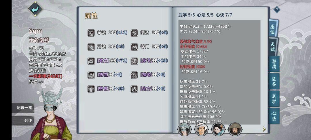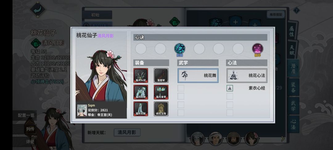 主角用常规的墨子悲丝(最优先满参这个)加各种输出外功,这个本对命中要求不高所以可以带天风剑或者天山古剑,心决也是常规pve配置(蝎毒升到35级,其他全升主角的)。内功里没问玉谱可以用武当心法替代,没有大藏的话,额 。