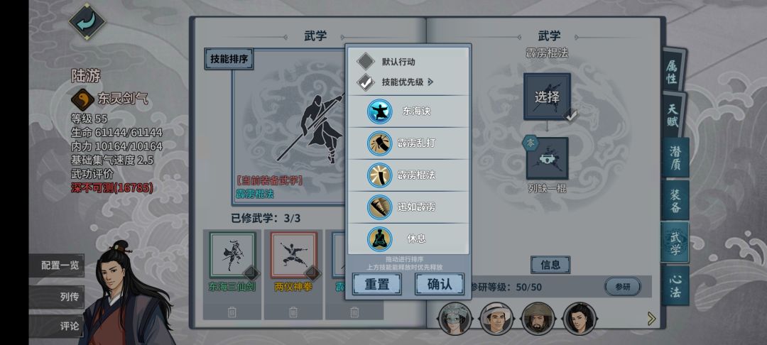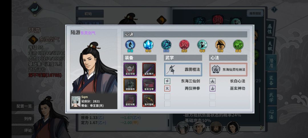 陆游在没有莲花棍的情况下用霹雳棍可以提供概率的眩晕控制,装备心决就是常规的减抗套,这里没有流放衣服的话就穿巫玄衣服,腰带换鬼谷腰带。减抗越高越好