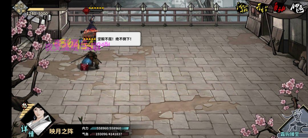 阵容我们上主角,唐丸,乙桃和黄飞鸿,自动即可。这里boss有一个类似西洋宝甲的被动,打一次减伤一次,所以只要主角一个人砍即可。