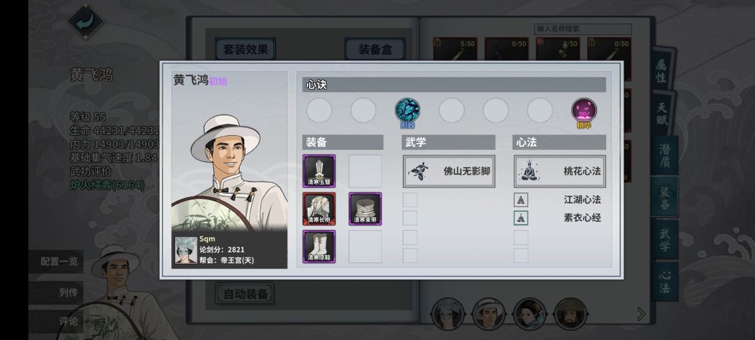 银针工具人黄飞鸿,这里清寒套没有的话随便穿点撑血的即可,注意一定要解锁黄飞鸿的银针天赋(没有的去走一遍黄飞鸿任务线即可)。