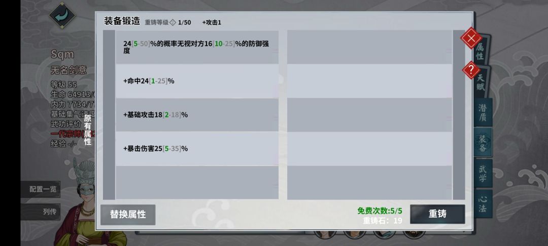 主角属性参考和武器洗炼见下图,行动顺序为平a-休息。