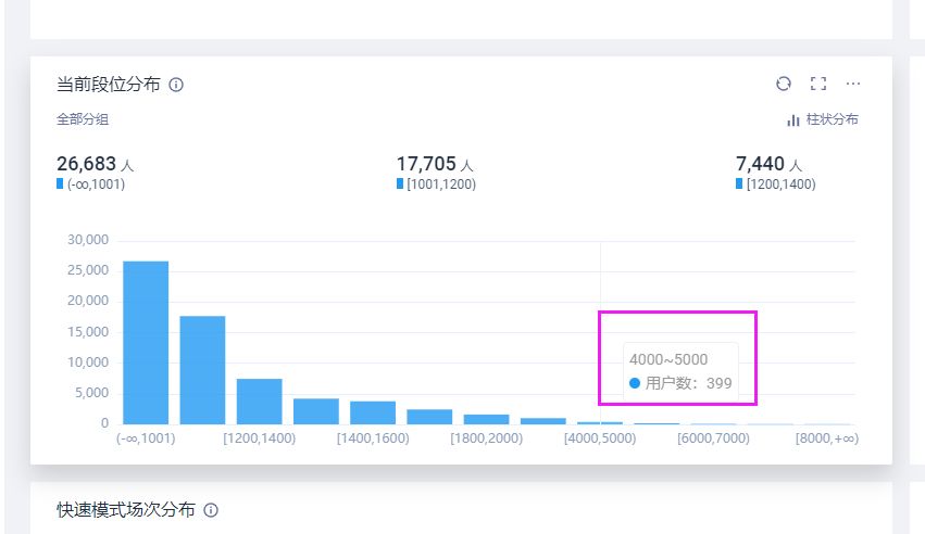 另外目前段位分布情况,大部分玩家都在1000-2000分,因此高分段的同学们手下留情,多带带萌新。