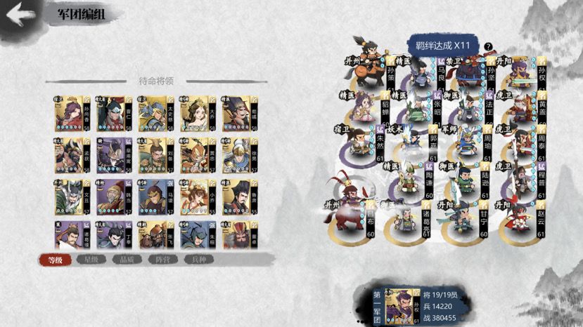 有条件的上个吕蒙添个鲁肃(鲁肃除了凑buff没有用处)凑数,整个四嘟嘟buff会更好,图中的甘宁赵云马良就是个添头,任意换,不过两翼一定要有枪兵,如果是能撑到60秒后的战斗,上个荀彧效果比这好
