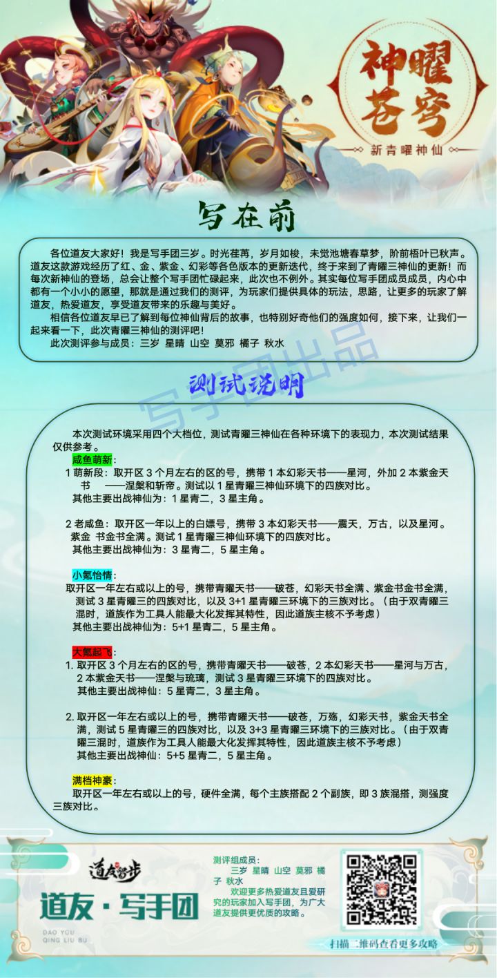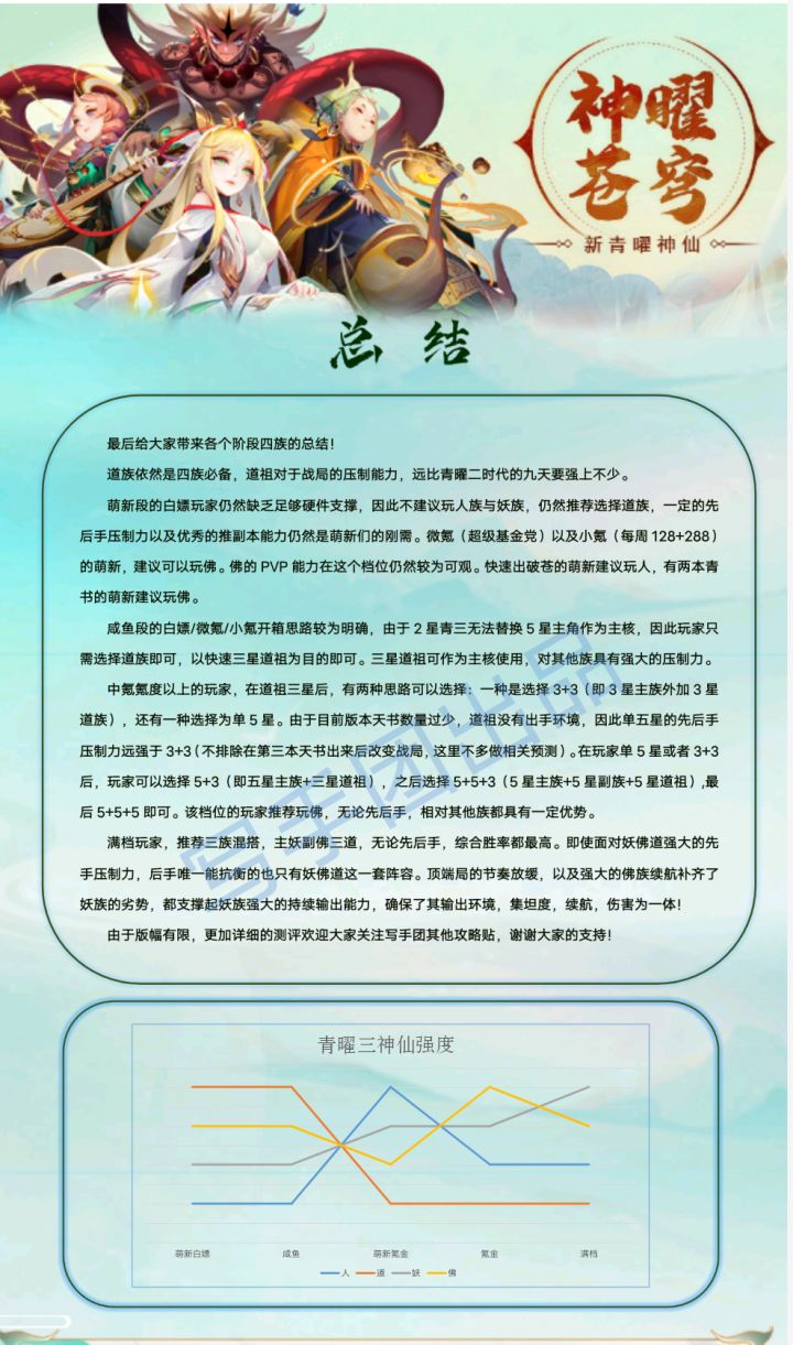 Tap的小伙伴们,大家好,我是写手团三岁!第一次来tap发攻略贴,请大家多多关照!今天给大家带来青曜三,四族神仙的测评,让我们一起看一下吧
