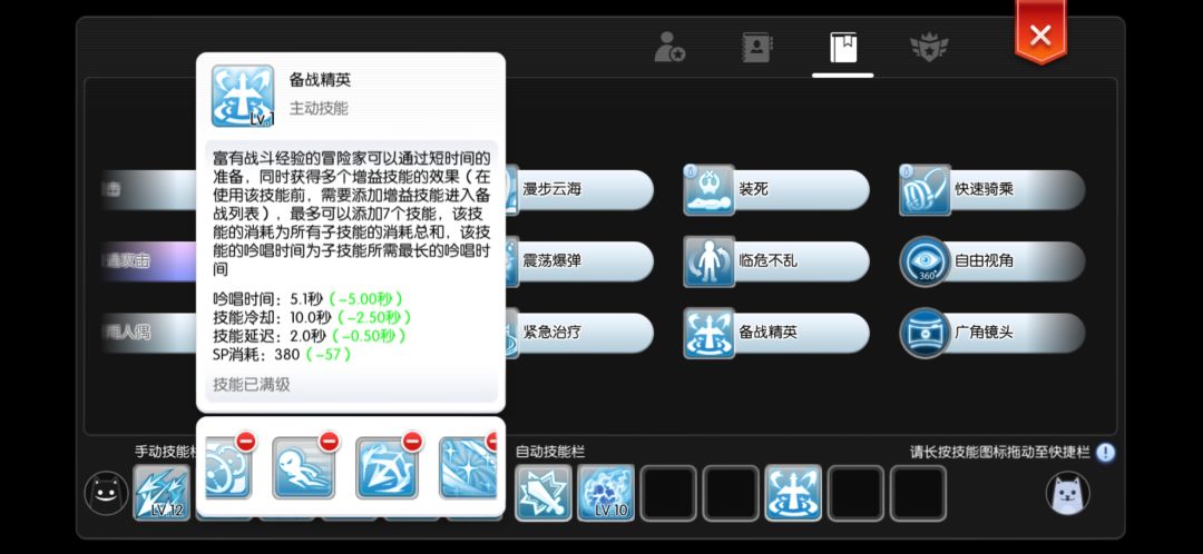 因为实测挂机备战就绪这个技能每次消耗固定蓝,并且对于部分技能不到时间不刷新,如果技能都放里面会频繁施法,极其耗蓝。