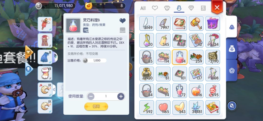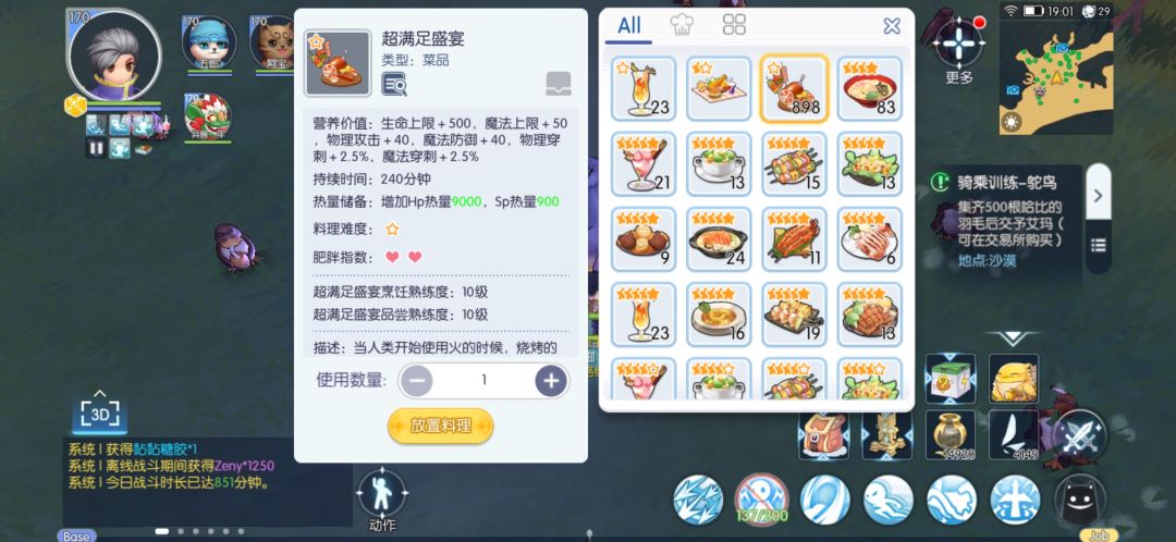 强化需要b级灵巧料理补伤害(新手一定要是b),b级或者a级敏捷料理补攻速,火灵石增伤,tap任务的药增伤(不能叠,每次只能持续30分钟),带上回蓝猫五郎(需要做任务给他买装备升级才有回蓝效果),吃超满足料理6层,不会6层和制作超满足的朋友请百度别的帖子,30分钟就行。料理属性图