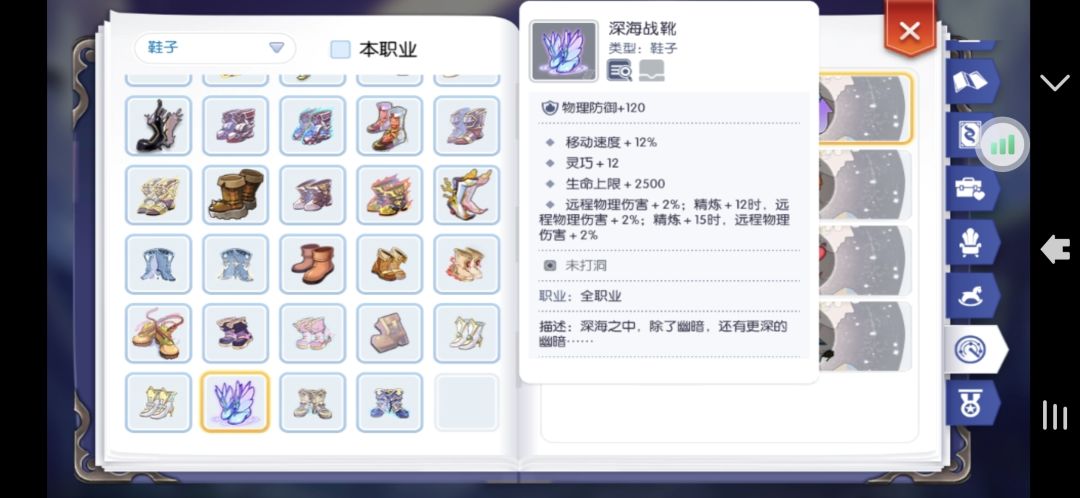 鞋子用高阶猫鞋,开孔(可以不开)。也可以用脚链,开孔。脚链是防止你攻击太低没打死被别人抢怪的。远古制造远程鞋子