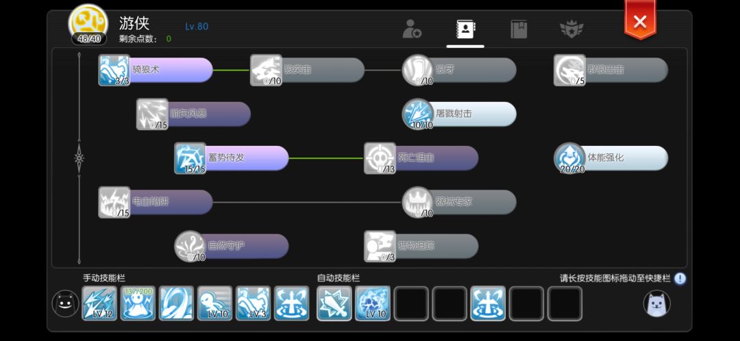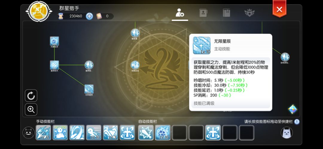 技能以平a增强为主,基本都是被动。建议按照这个点,因为萌新本来就是在挑战极限。四转技能只有这两个有用,其他都可以不点。