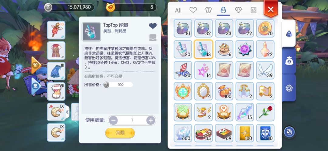 鬼女卡片一张,用于提供更好的回蓝效果,上限的提高代表更容易触发暖心料理自动回复。20万