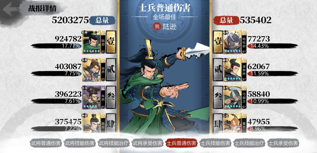 通关纪念,无脑枪策轻松通关,枪还是闪避,策士御医。 175前零战损(是的就是0战损),175后不超过一百。此阵容极端无脑,主要注意几点: 1、荀彧和周瑜战法拉满,有富余的可以吧张昭陆逊朱然战法升到三四级,周瑜、郭嘉和朱然一排。 2、被并州小克,一个是后排容易被骑兵切死,二是枪兵容易被并州吸引导致奶奶被点死,我是把大乔和陈宫放在对面骑兵那一条路,陈宫减伤,大乔奶基本没问题。 3、175后要特别注意,第一波一定要打好,应为第一波没有怒气,技能放的慢,所以最好用战法削弱对面,或者带振奋和鼓舞加强自身攻击,否则可能会翻车。 基本注意这几点通关都很轻松。这个阵容推图强,但是pvp不能叠怒气,而且新版本全兵种命中增加,再加上容易被骑兵切,所以并不是很强,以上是我的一点心得,希望能够对你们有所帮助。