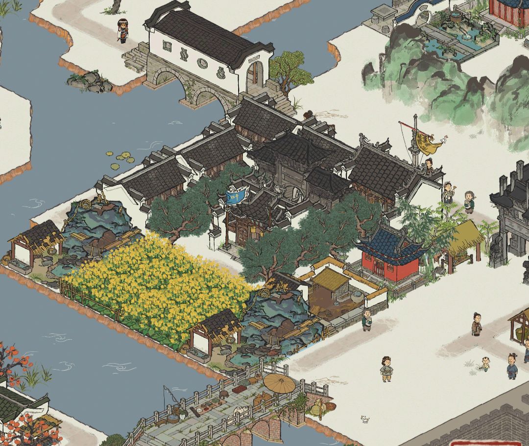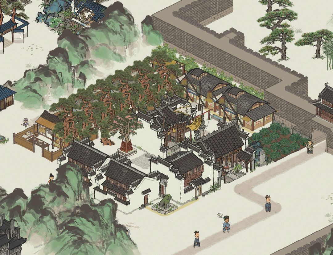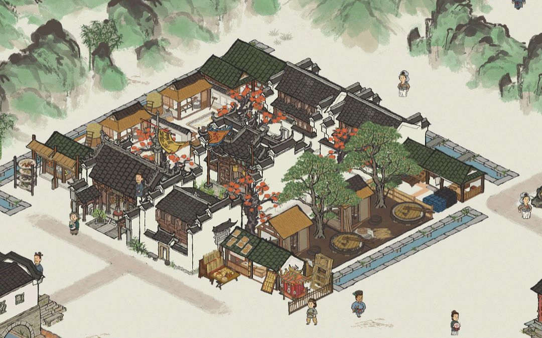 我把4个商业建筑分别放在了四角 这个家祠污染极其严重 我就在周边摆了一圈沟渠