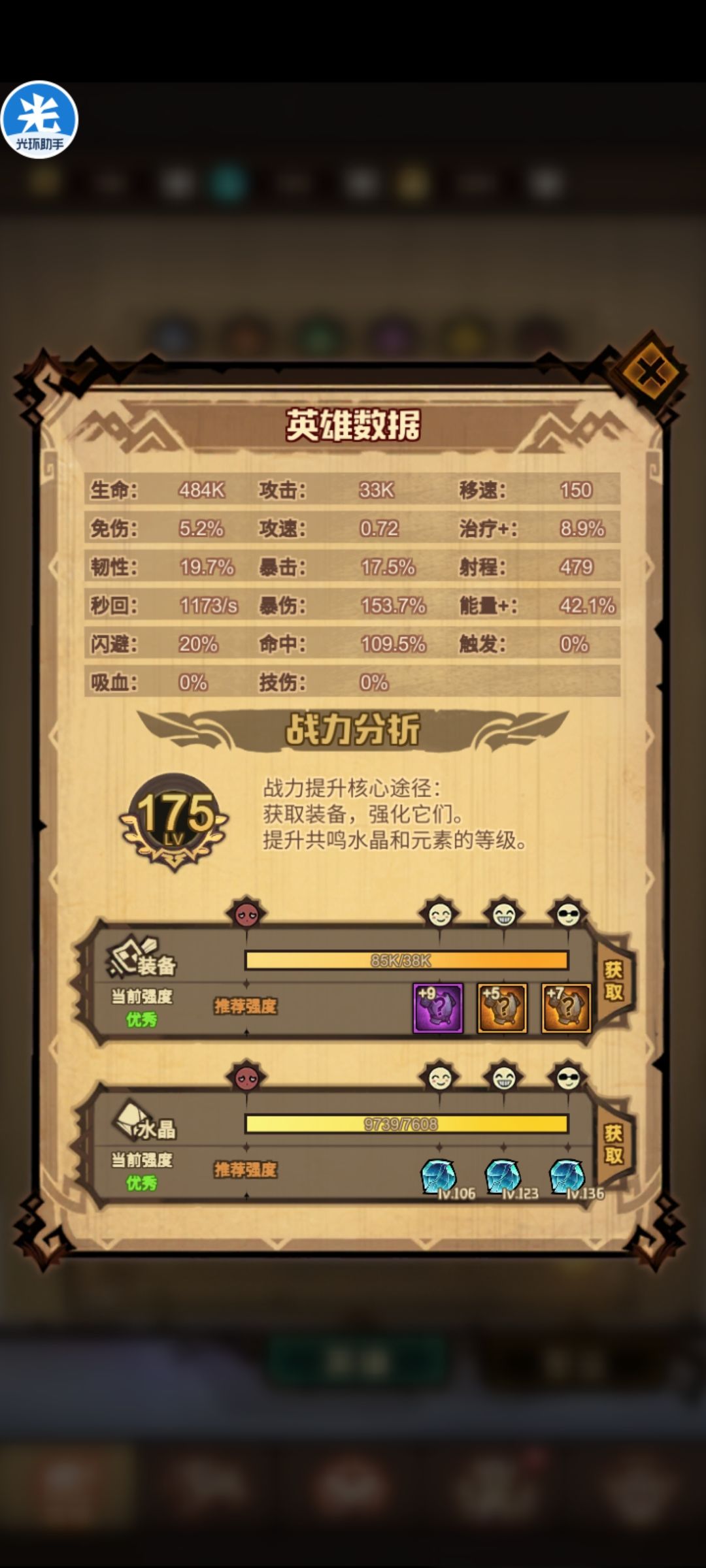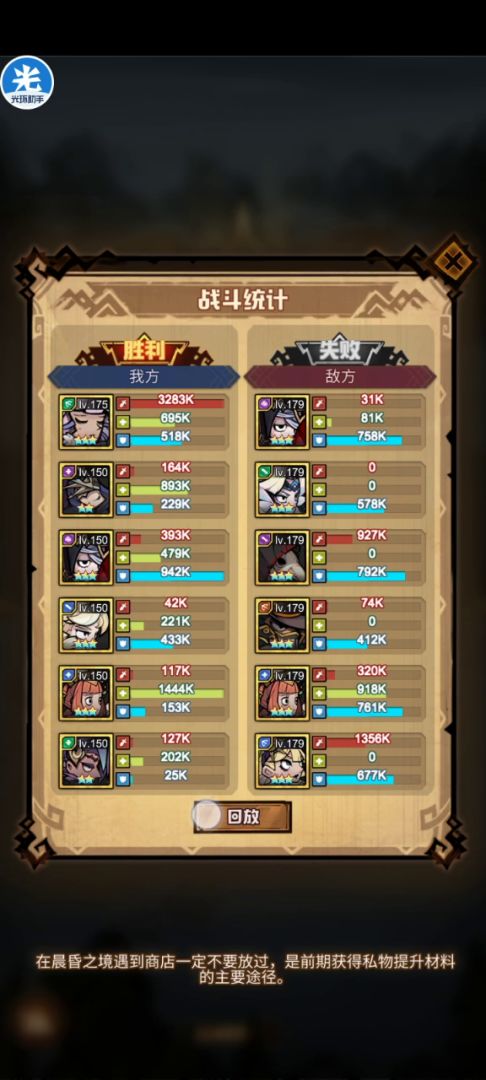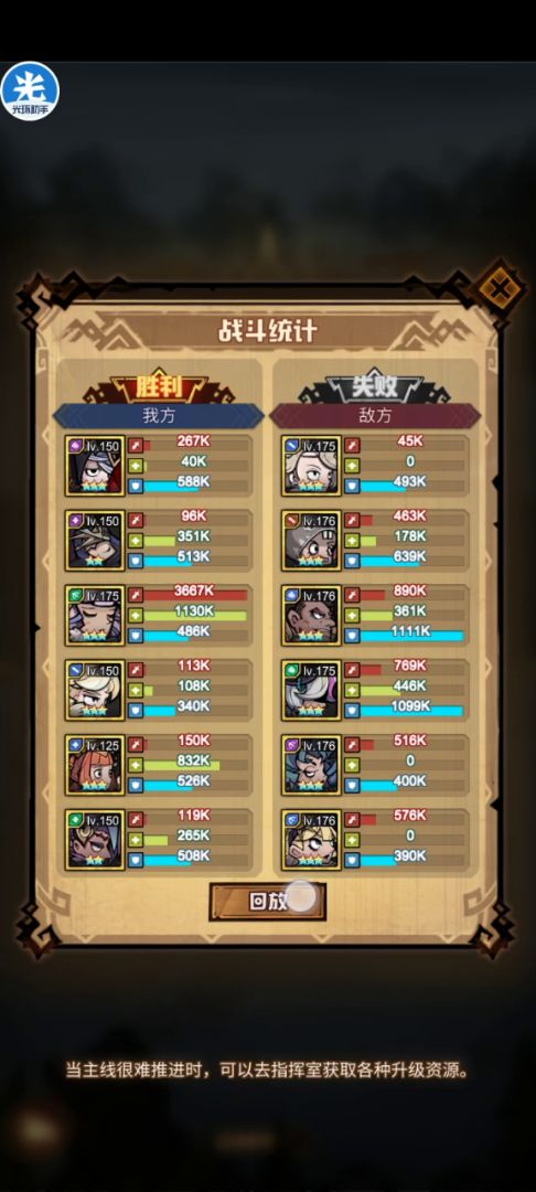 这关难度在于盲女输出有点力不从心了,175级打176级没有战力优势了。过关技巧还是开局三暴击。