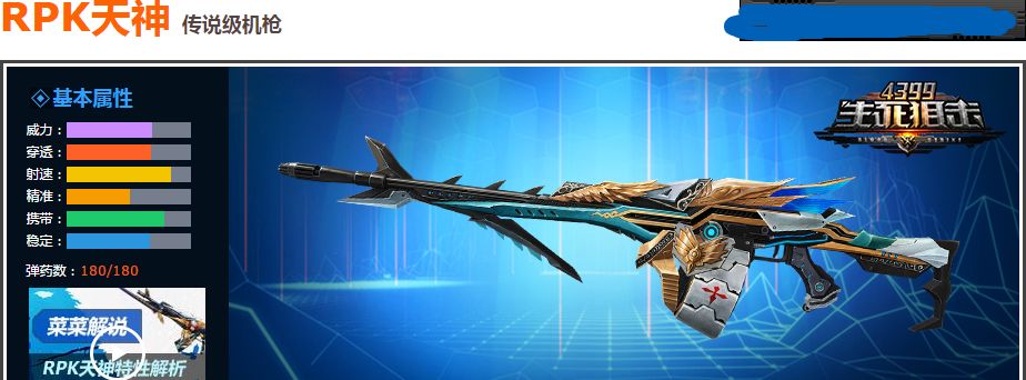 RPK天神:武器点评——新十字军联盟所产出的支援型RPK,拥有将冷凝剂从枪管发射出去的性能,不但能作为攻击击穿敌人,也能生成墙壁阻挡敌人的攻击。武器特点——1.酷炫外观;2.威力强劲;3.射速快;4.极速换弹。