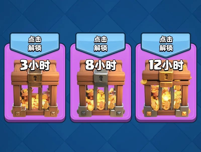 应该是看到玩家的需求,这次新增了三种金币宝箱,分别包含1000-2000、2000-5000、7500-12500金币,解锁时间分别为3、8、12小时。