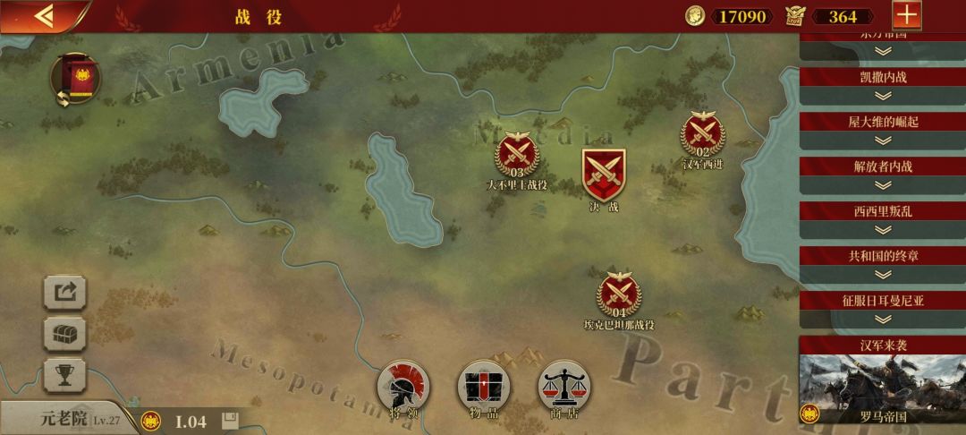 这阵容打决战,用汉军打罗马赢了,罗马主线打不过汉军,指挥官还好没带行军,不然直接第一把就直接冲弩箭手的怀抱(包围),这关难道必须再搞几个将领才能过吗?