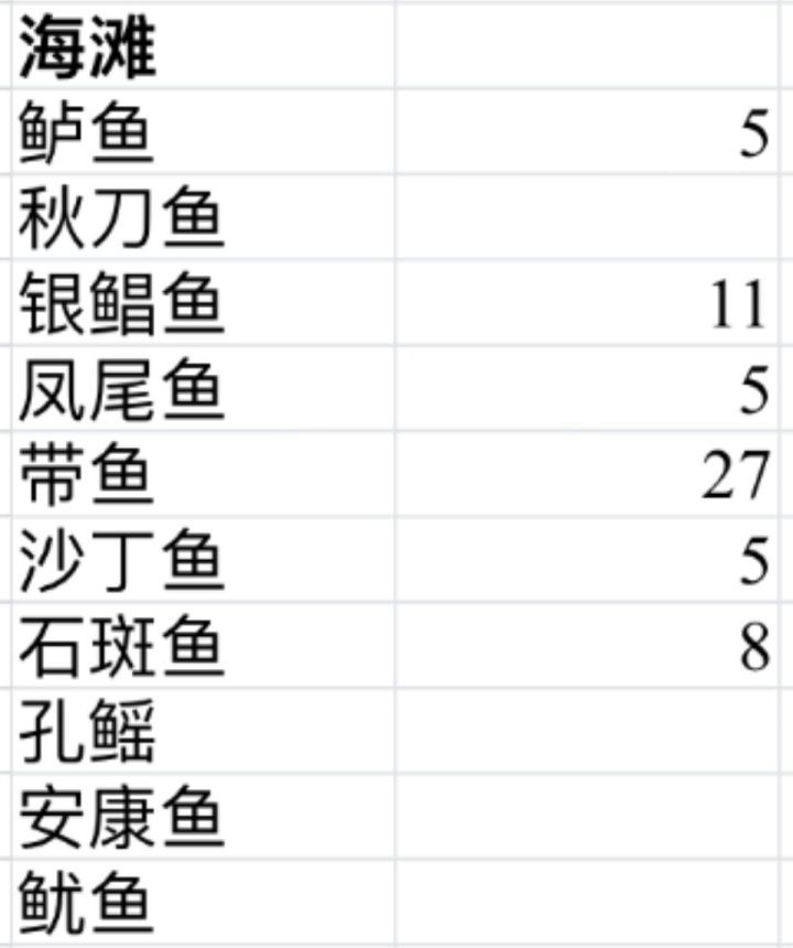 海滩也不推荐,除非你20:00以后去,有带鱼(27经验,紫星772金币),不然也是价格低经验低的鱼(图三),海滩的高级鱼都在冬天。