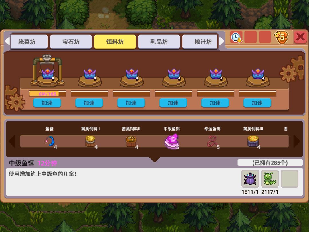 因为我初级鱼饵比较多(图四五是升级完以后剩的😂),所以我去了废弃工厂和小镇河,主要是想攒食人鱼(公会竞速)和鲤鱼(做食物回体力)。除了神秘海滩我用的中级鱼饵,其他地方都是初级鱼饵。