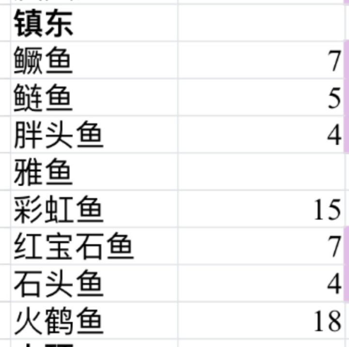 🍀要升级的话不推荐去镇东湖,那里的鱼感觉啥季节都有,也不需要攒,而且大部分鱼经验低(见图二)。