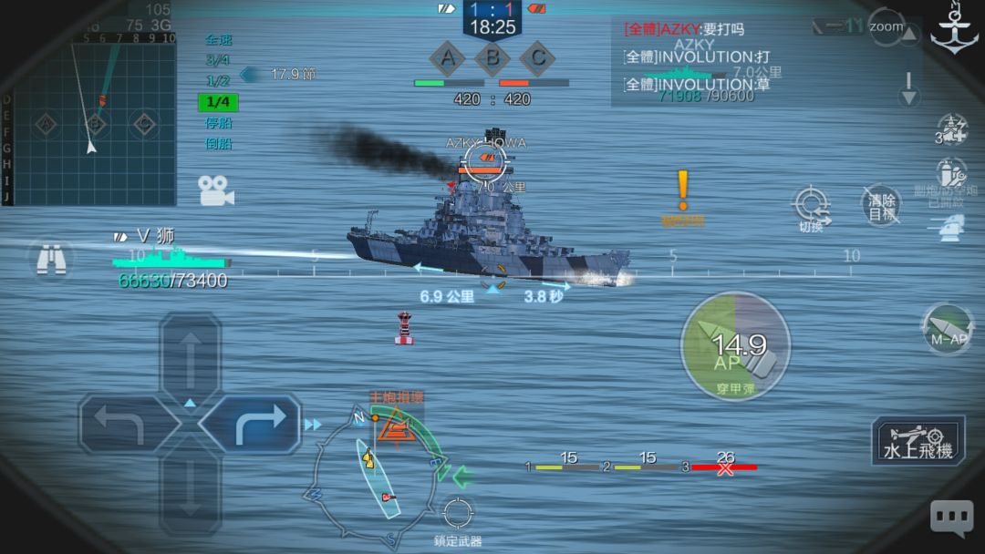 这里只需要判断敌方目的了,通常只有两个――板载or接舷。前者基本无脑MAP,后者可以切AP开始提前转炮了。
