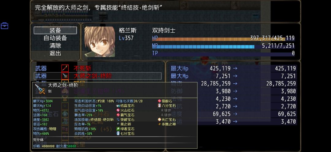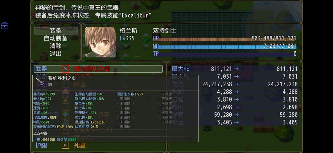 我们先用『大师之剑·终阶』作为一个过渡装备。(主要是武器专属技能绝剑斩比较重要)『契约胜利之剑』暂时先留存背包。然后再打一次大师剑的试炼。获得『神之心』。个人感觉暂时还是装备神之心的好。
