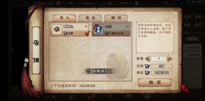 三、小势力。巨鲸帮(押镖开启)总7000好感,最快做完,有上乘百兵(垃圾),秘技闻涛(一般,优点就是较快),海钓鱼竿还可以;铸剑山庄(主线开启)总15000好感,任务较恶心,建议存点材料再做(要牛皮,止血散,解毒药,柳木什么的),有三张图纸,一个60橙甲,一个70橙枪,一个90橙剑,10000好感开紫金炉子,满好感可以买芒晶(元宝买的,很贵,有很好的装备再买吧);八卦门(60级支线任务开启)总27000好感,任务还好,刷70怪就很快,有臂力药(5点那种),三个白芍,秘技——无极刀意(还可以),上乘八卦掌(比碎虚垃圾),伏羲刀法(刚开始是上乘,升满好感后做任务变成镇派,没什么拿的必要,用太虚就好);大昭寺(龙象任务开启),总36000好感,刷大雪山(提到大雪山就不得不说挂机这个地方了,建议要阅历挂大雪山,要钱挂青城山)80怪就OK,大昭寺好东西挺多的,总25两5颗洗髓丹,20两一颗顺脉丹,10两秘钥(镇压佛牢,建议能打过90怪再去,一天15000阅历),秘技明王,镇派轻功——身空行,90橙甲图纸(虽然比较垃圾),龙象也与大昭寺有关,还有本大手印😉(比较拉胯),有个佛刻(附加材料),可以给衣服弄免伤,就很nice;最后说下紫阳山庄,总44000好感,有个镇派西子剑法,秘技——剑胆琴心什么的,不过紫阳是开的早,却难做,对新手没什么太大帮助,不过茶经必买,读到200级加3%真气速度很不错,200-300又慢,又不怎么值,我大概算了下,四个人都算上也快不了多少,我是懒得搞了。(当然还有个桃花坞我就不说了,一是开的很晚,对新手完全没帮助,二是任务贼难做)。