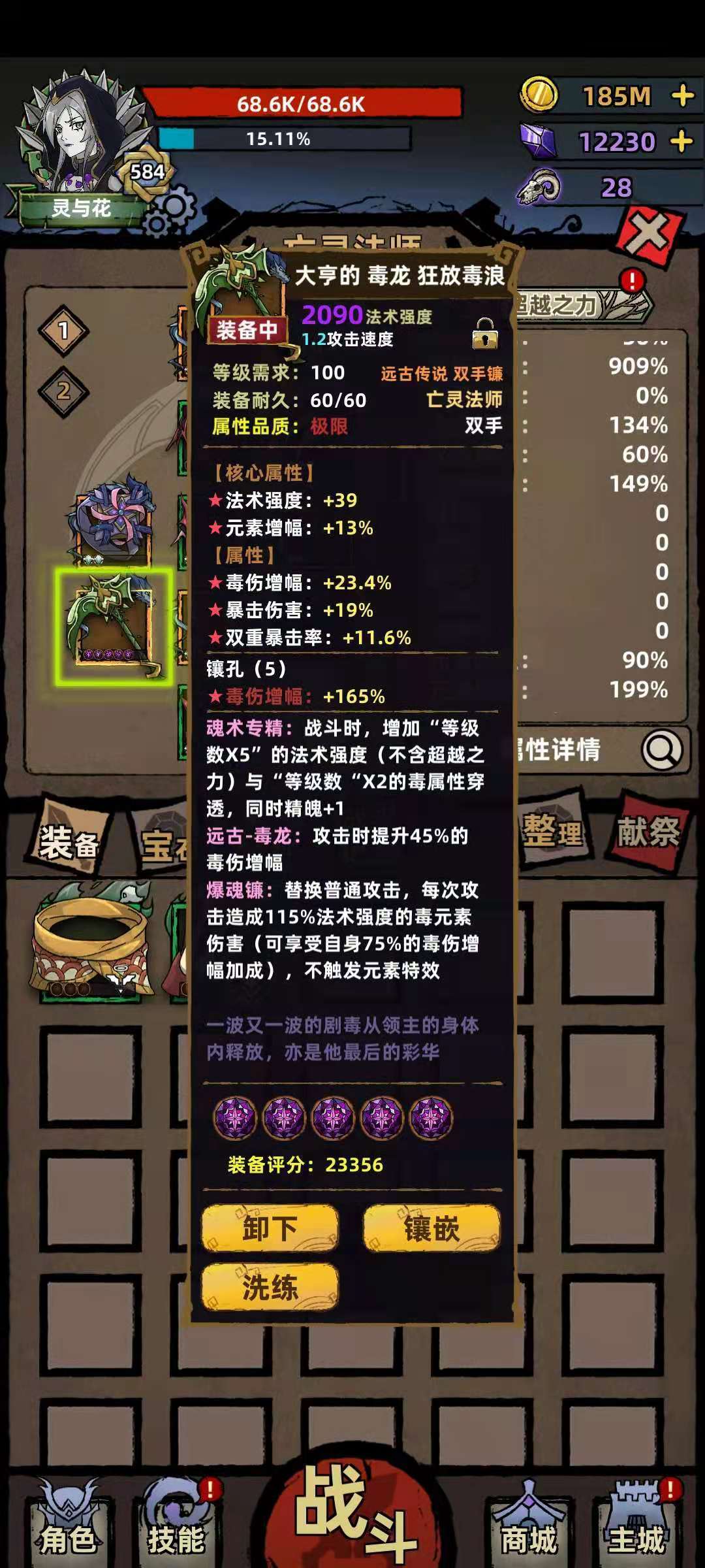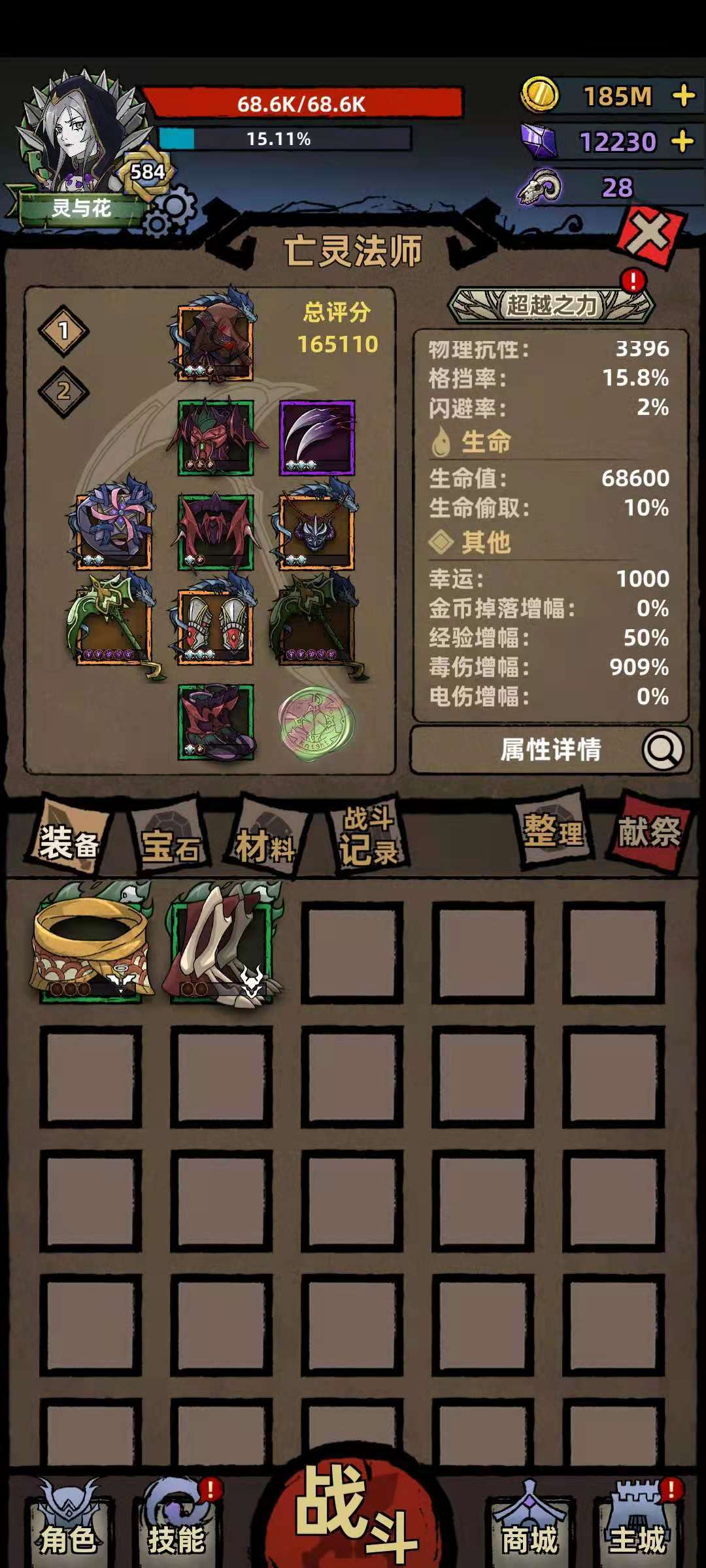 其他装备很多答主都说过了,我也不赘述,毕竟我也是慢慢看着学习来的,只是分享下自己目前使用的套路,希望对各位玩家有所帮助。下面是一些装备和属性图,可供各位查看比对: